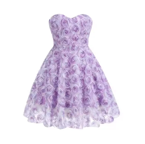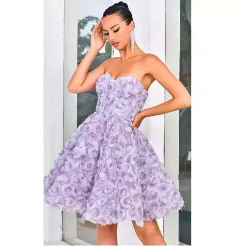 Purple Fairy-Style Women's Short Evening Gown Sensual Sweet Off-the-Shoulder Dress 3D Roses Beading Zipper Customizable Size